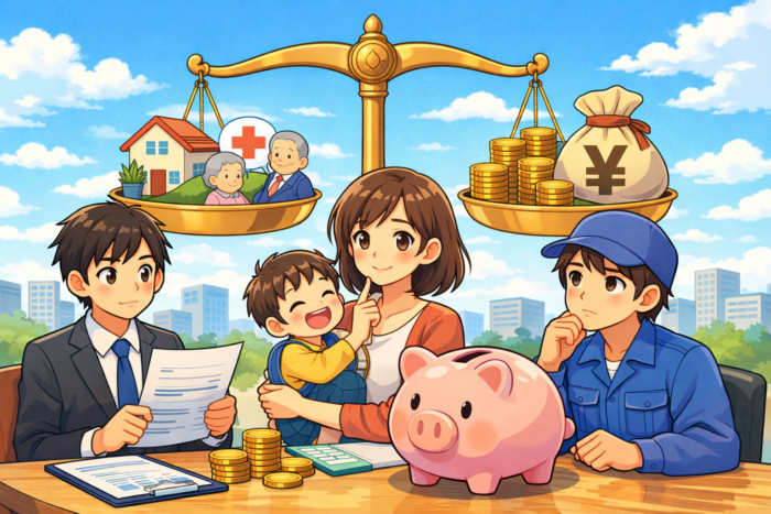現役世代の負担感を和らげる工夫は、社会全体として重要な課題です。その一方で、再分配(応能負担)や社会保険の正当性を損なわない設計であることが前提になります。